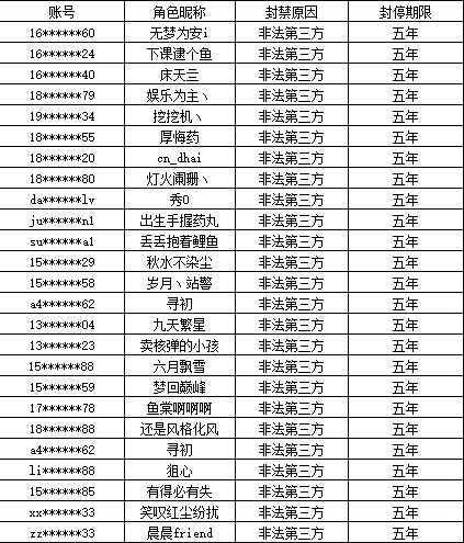 以下为新封号规则发布以来,2025年10月25日-11月25日封停五年名单,用户利用(非法第三方软件,非法驱动,第三方辅助工具等)恶意破坏游戏平衡,根据情节轻重给予五年的封停处罚