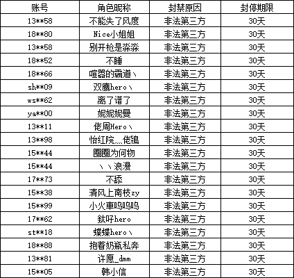 以下为新封号规则发布以来,2026年2月1日-2月28日期间封停30天名单,首次违规的玩家,将处以30天账号封禁的处罚。